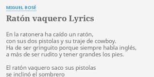 Cosas De Ninos - Miguel Bosé Gravadora. Miguel Bosé - El Ratón Vaquero Letra e música para ouvir - En la ratonera ha caído un ratón con sus dos pistolas y su traje de cowboy. Translation of El Ratón Vaquero by Miguel Bosé from English Spanish to English Deutsch English Español Français Hungarian Italiano Nederlands Polski Português Brasil Română Svenska Türkçe Ελληνικά Български Русский Српски العربية فارسی 日本語 한국어.